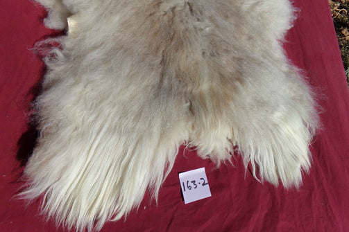 Navajo Churro pelt. White with brown fibers. Long fluffy fleece. Free shipping.